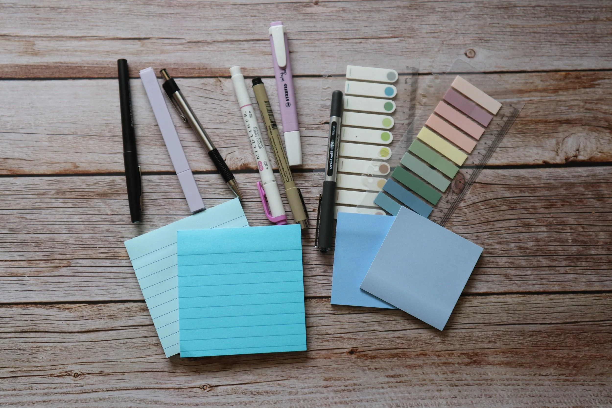 - Things like a range of pens, highlighters, as well as Post-it notes, depending on your stationery preferences. You may try a few different ones out in the front of your bible to see which ones you like, but also which ones don’t bleed through the thin Bible pages.